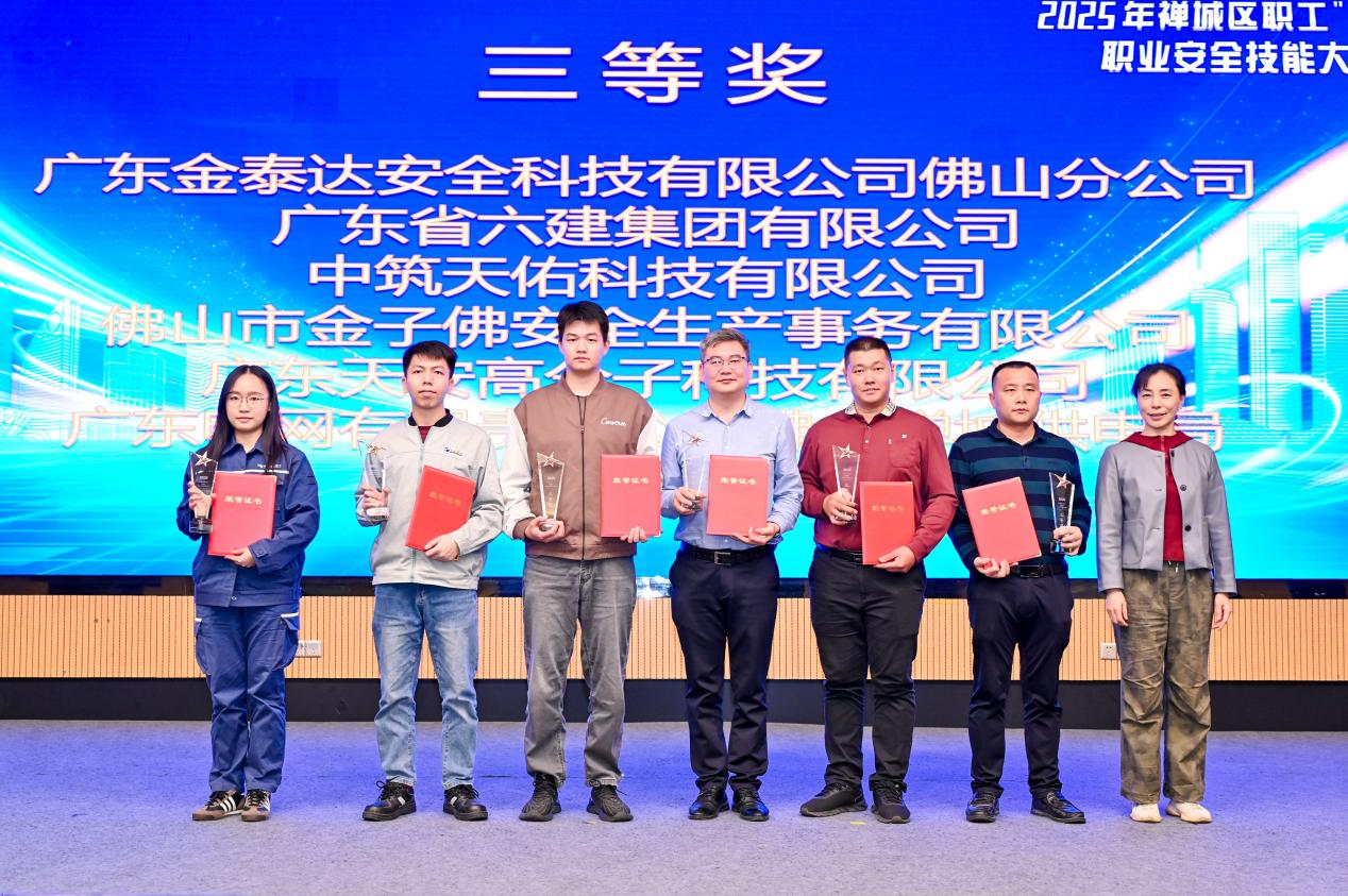 2025年12月3日,2025年禅城区职工“安康杯”职业安全技能大赛决赛圆满落幕,中筑天佑科技有限公司凭借《高空作业防护》主题作品,从全区各参赛队中脱颖而出,荣获大赛三等奖。